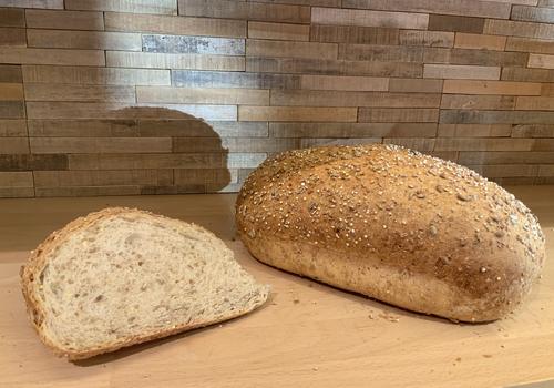 Waldkornbrood met desem, zodat het extra tijd heeft gekregen om lekker te worden. Een heerlijke korst en een milde smaak.